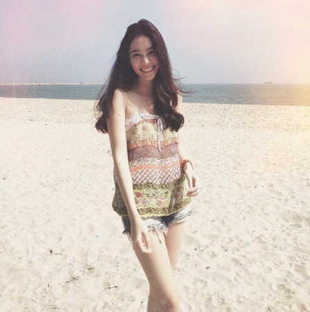 泰国22岁女演员Sarita Eamvasant拥有匀称修长的美腿,穿着紧身上衣更露出水蛇腰。15岁时就参加新秀偶像选拔比赛,今年更和泰国当红偶像DomePakorn Lam一起演电视剧。
