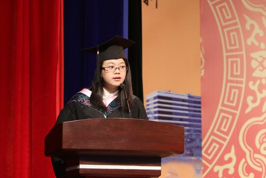 这四年,我们一同见证过凌晨四点的华理食堂,品尝过传说中美味的华理红烧肉,感受过闲情雅致的华理通海湖。我很开心和你们共同回忆在华理的点点滴滴,很自豪华理学子这四年的努力和拼搏,变得越来越优秀。不管是四年后还是十年后,我们会变成什么样的人,希望我们带着勤奋求实、励志明德的华理精神,为社会创造有意义的价值和贡献,以此回报母校,回报祖国。