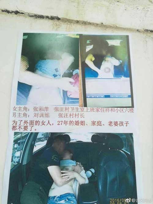 日前,灵璧县冯庙镇张王村村主任刘某的一组不雅照片在网上流传,网络称发图人正是刘某的发妻,她在拍到这些照片之后,一怒之下将照片张贴到女方张某所工作的村卫生室,在当地引起轩然大波。