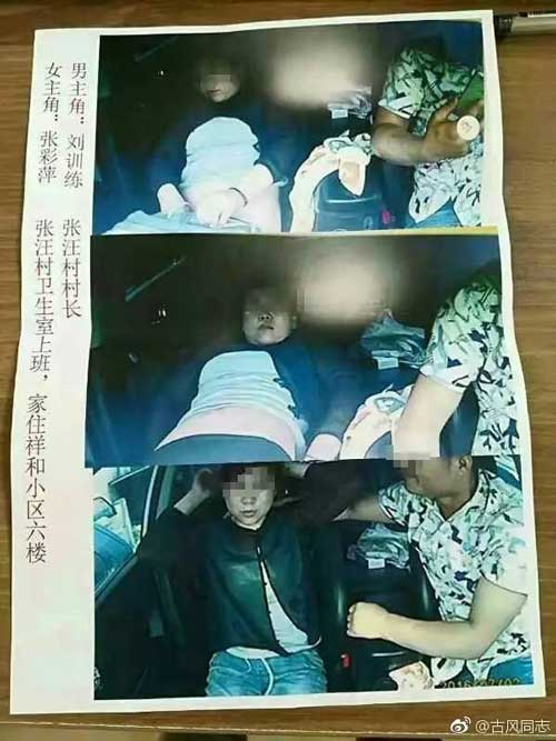 这是网上流传的照片,照片上男女双方在车上举止不雅,照片上配文字称,冯庙镇张王村村主任刘某背弃了相守27年的发妻,与村卫生室工作人员张某有不正当关系。20号中午,记者来到灵璧县冯庙镇张汪村,因为此时年轻人大多在外面工作,村里只有几位老年人,但是他们均表示对此事并不知情。