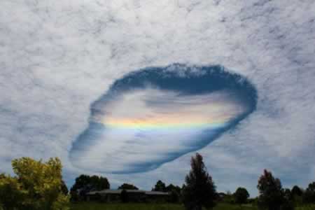 罕见巨型雨幡洞云,你们见过么?仿佛是上帝踩了一脚,中间还有彩虹。国外网友在澳大利亚维多利亚州的东部拍到的天空,fallstreakhole,下降的冰晶造成云被穿洞。感觉天空开启了新世界。简直美呆了!