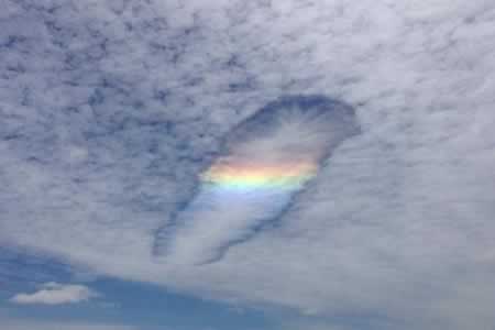 据赏云协会解释,“雨幡洞云”,又叫穿洞云。当云层中的部分水滴冻结形成冰晶体,从云层中降落下来,便形成了雨幡洞云。