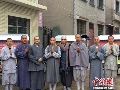 自从5位法师从大乘禅寺起香后,悟演法师一直牵挂着他们,尤其玄磊法师是他亲自为之剃度的弟子。当这5位朝礼九华山的法师见到悟演法师和心平法师后,他们像见到久别的家长,流下了思念的泪水。