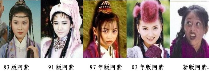 为何阿紫的造型那么雷人呢?扮演阿紫的演员贾青说:“那张照片是阿紫中毒了,毒解了还是美女。”
