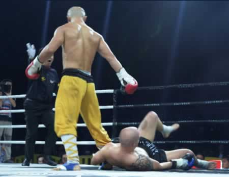 第三回合,一龙做出了一组中国功夫里漂亮的醉拳,将对手完全打乱并击出擂台,使得MMA双料选手的加博尔完全不适应一龙这种中国功夫的节奏,最终裁判宣判一龙绝对优势获胜。