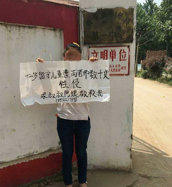 本月4日,网名“白衣天使茉莉花”的微博发布网络举报称,其侄女何佳佳(化名)在今年3月至6月间,遭到所在周口市西华县奉母镇第一中学副校长、教导主任二人强奸。
