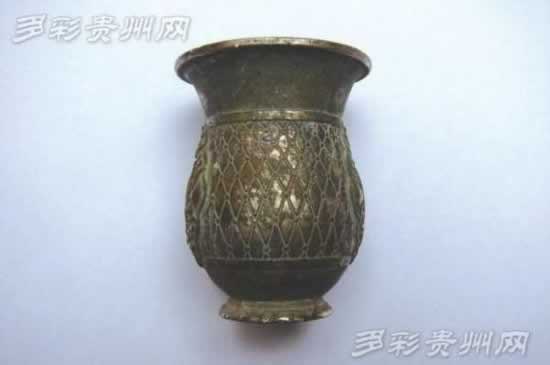 据史料记载,在商代时,由于青铜器制作技术的提高,我国的青铜酒器达到前所未有的繁荣。商代以后,青铜酒器逐渐衰落,到战国、秦汉之际,青铜酒器主要有爵、角、觚、觯、斝、尊、壶、卣、方彝、枓、勺、禁等。杨文金说,经查看比较,镇宁自治县革利乡六村田坝苗寨出土的这个青铜酒杯的形状、花纹图案与古代青铜酒杯不相同。