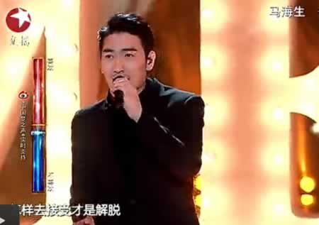 作为成名已久的歌手,马海生一直以老王子自称,重新回到舞台上的他也有着和其他学员不一样的心态,而这场比赛对他来说有着非常重要的意义:“如果能进四强,爸爸妈妈会来现场支持我。”一首深情款款的《等你爱我》让观众们再度领略了他的唱功和舞台魅力。身为好友的郭敬明也极力为马海生拉票:“其实这首歌是一首女生的歌,对海生来说可能没那么好唱,但海生的音域非常高,大家都知道的实力唱将,所以刚刚听他唱歌真的是一种享受。我觉得这个舞台真的是海生等了很久很久的一个舞台,我希望所有观众给他这个舞台。”