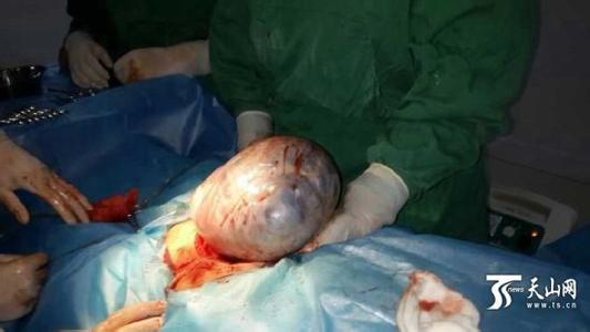 12月7日,她来到阿克苏市一妇科医院进行检查,经明确诊断,为尽早解除盆腔内巨大囊性多房性肿瘤,郭丽决定立即手术。因肿瘤巨大,而患者仅31岁无孩子,手术必须在不影响其生育情况下选择合适术式,主治医生与专家组进行了全面会诊后,对手术方案及应对措施、护理方案等进行了细致安排,尽力将手术风险降到最低。12月7日,经过近两个小时的手术,医生顺利从患者体内取出一个大约25×18cm重2.4公斤的巨大囊肿,目前郭丽情况平稳。