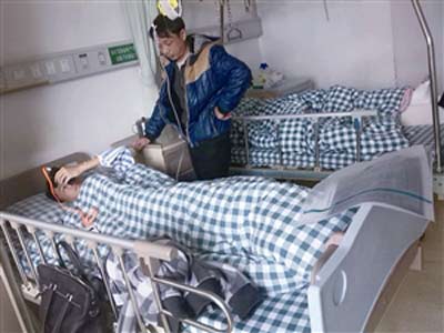 受伤学生戴某躺在医院里治疗