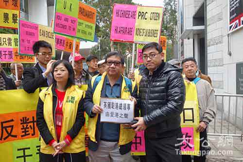图:爱港之声成员将信函交给英国领事馆工作人员