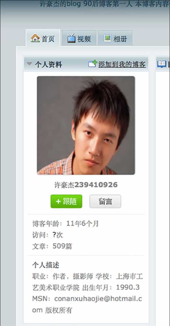许豪杰的搜狐博客留有邮箱,该博客真实性得到其认证新浪微博的确认。