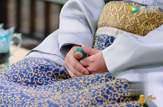 不少网友还记得在楚乔传第48集剧情中楚乔第一次在船上见到詹子瑜的情形,当时詹子瑜坐在轮椅上,最引人注目的就是他右手大拇指上戴的硕大的绿色斑石指环!而第51集中往生营营主戴着黑布遮面,样貌完全被遮挡,坐在书案后悠闲地弹着琴。他弹琴的右手大拇指,戴着的绿色斑石指环竟然与詹子瑜的一模一样!