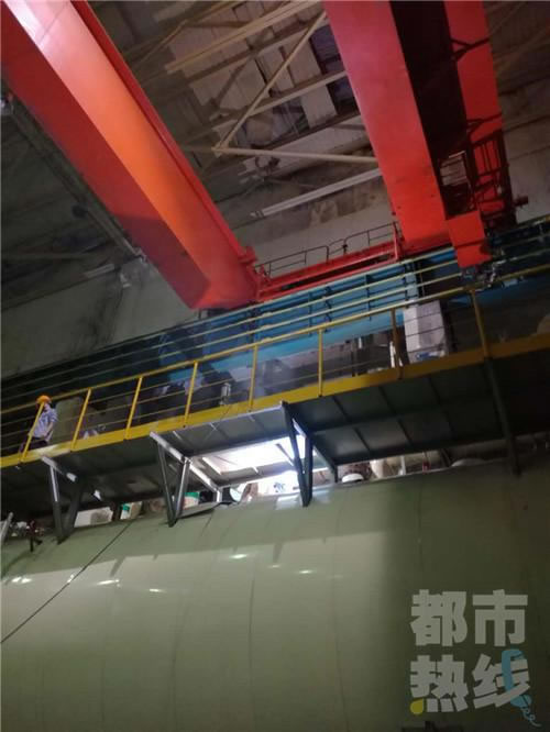 随后,记者上到了五层,在这里记者看到了当时发生爆炸的罐子。记者在罐子附近可以感觉到温度非常高,再往前走,记者来到了五号机组。据爆料人员告诉我们,当时事故就是在这发生,从这到上面大概有十几米。在这里,记者看到了一个绿颜色的采光板,而这就是当时抬受伤工人和死亡工人的。在这个上面,记者依然可以看到有些采钢板已经凹裂,当时就是拿这些把人抬出来的。