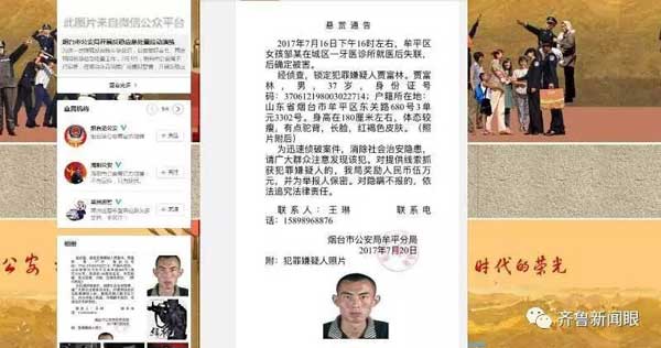 接到报案后,牟平公安分局成了专案组。今天早上五点多,牟平区失联女孩邹某的尸体被找到。现在,公安机关已经锁定了犯罪嫌疑人: