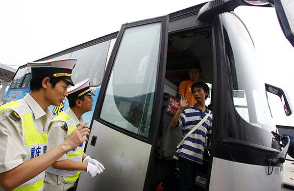2010年6月,重庆,被困传销组织的田某沿着高速公路走了两天两夜,执法人员发现并了解情况后,将其送上了回家的班车。 东方IC 资料图