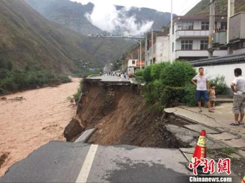 甘肃陇南遭强降雨 国省干线公路多处垮塌。