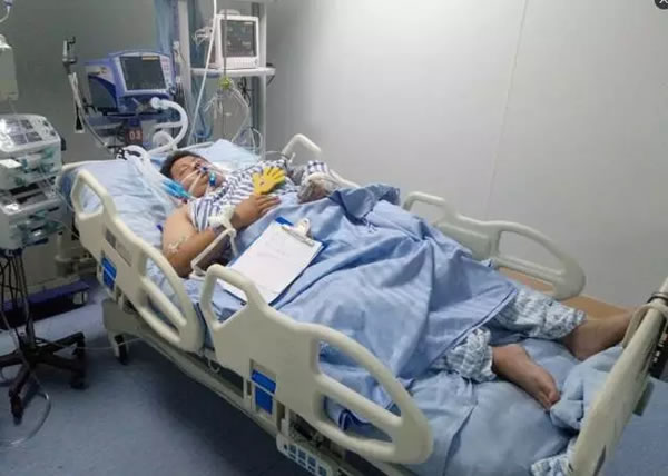 经腹部和胸部两次手术后,盘玺被送进了重症监护室。