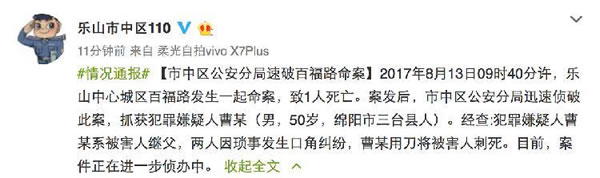 原标题:突发!四川乐山一年轻女子被继父刺亡 嫌疑人已被警方抓获