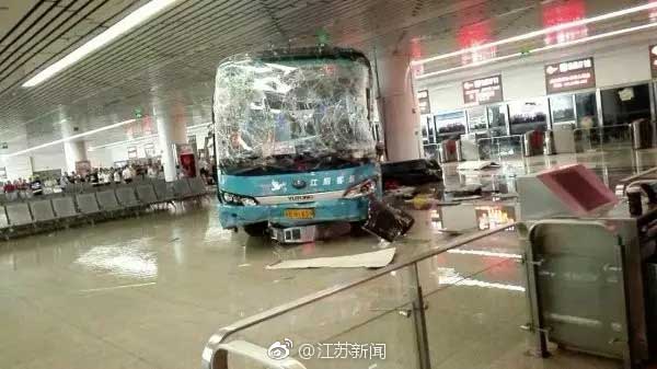 原标题:无锡客运站一辆大巴冲进候车室 事故造成5人受伤