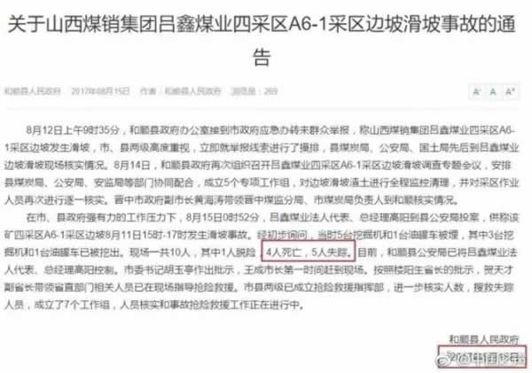 据@中国之声官方微博8月15日消息,记者刚刚从山西晋中和顺吕鑫煤业滑坡抢险救援指挥部获悉,和顺县委县政府有关负责人表示,对前期调查中因工作不深入、不细致,导致出现重大失误,延误了抢险救援,进行深刻检讨;对滑坡遇难者表示沉痛哀悼,并将全力以赴做好善后抚恤工作;对前期带队到滑坡现场调查的县煤炭管理局局长张瑞清就地免职,其他责任人将依规严肃追责;对县公安部门行政拘留的1名网上发帖者,立即撤销案件,解除行政拘留,并依法启动相关程序。