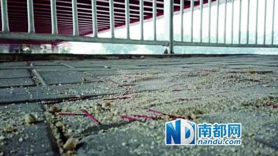 昨日下午,南都记者来到现场见到岸边的大摊血迹被人用泥沙盖住,上面有几根香烛残根,但血迹带仍在,而骰子和砖头不见了,估计是被警方提取走了。