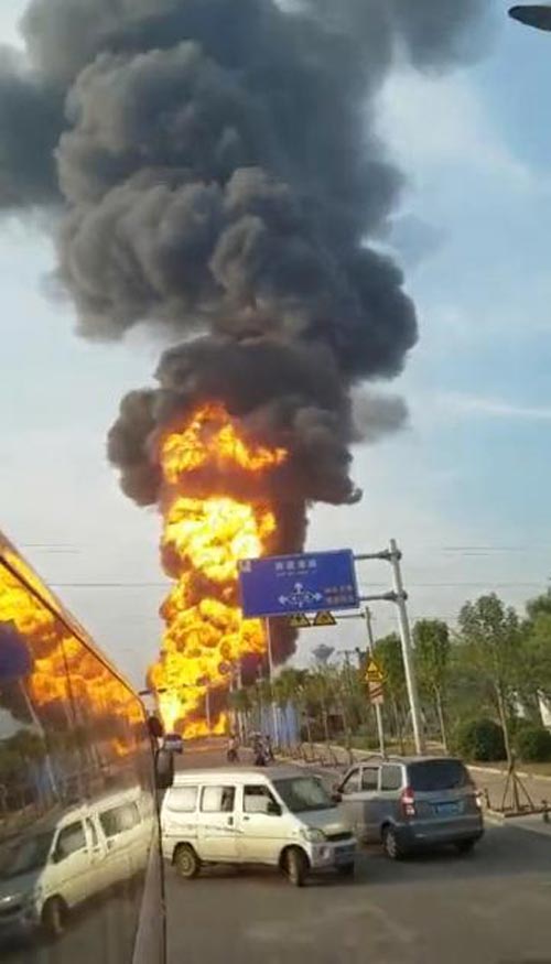 实拍山东临沂罗庄光大肥业火灾爆炸现场视频