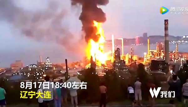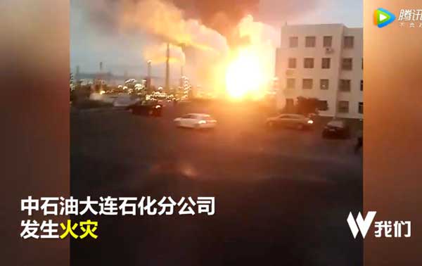 实拍中石油大连石化分公司火灾现场视频