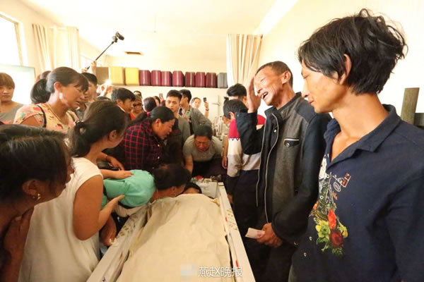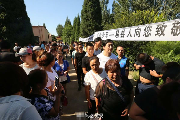 8月24日9点,在河北保定易县荆轲塔下的殡仪馆前,上千名群众自发祭奠为救落水母子而牺牲的彝族英雄高阿锋。他的亲人们为他换上崭新的彝族服装,群众们纷纷捐款表达自己的崇敬心情。