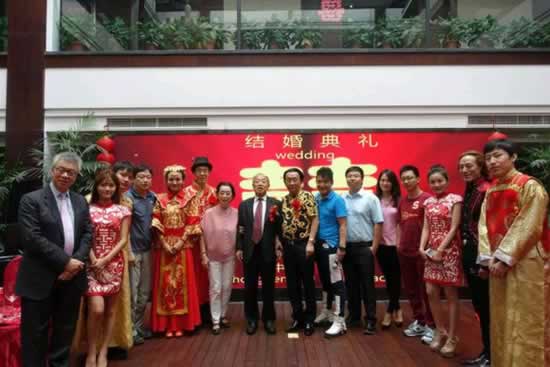 新郎新娘、主婚人、证婚人与媒体嘉宾合影