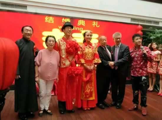 新郎新娘与李肇星、央视副总编辑彭健明合影
