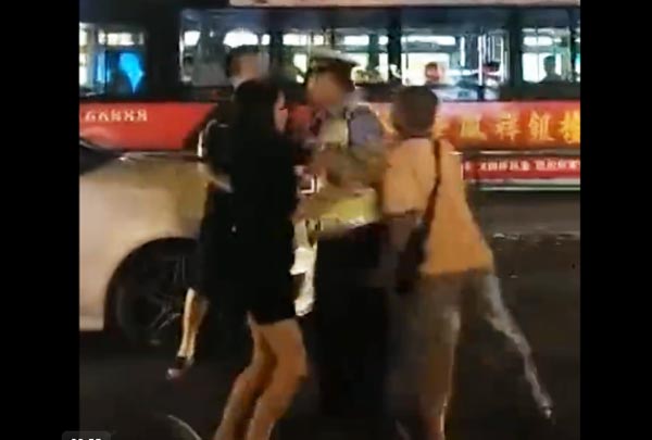 实拍四川绵阳女辅警与男友当交警面殴打公交司机现场视频