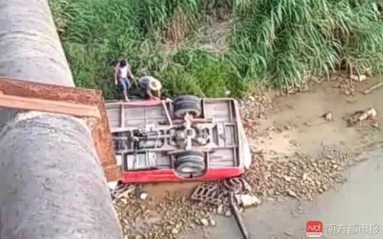实拍福建仙游客运车坠桥现视频截图