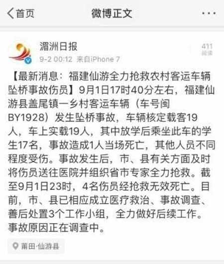 昨日福建省仙游县一载有10多名儿童校车从桥上坠落,导致多人伤亡,引起了当地的强烈关注。今天,网上开始陆续出现传言说当地瞒报车上的人数,当地官方则表示这纯属谣言。