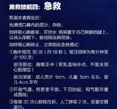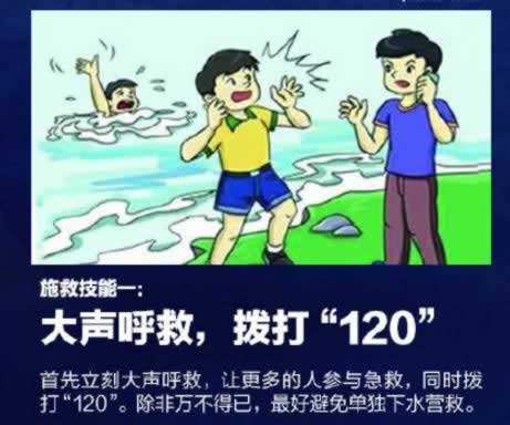 6、遇到同伴溺水,要智慧救援,不要盲目下水救人及手拉手施救,要及时大声呼救并拨打110。