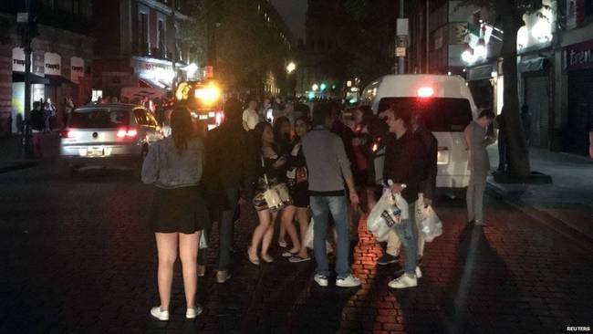首都墨西哥城的建筑物“发生晃动”。香港东网最新报道称,政府有关方面已发出海啸警报。图为民众在街道上等待的照片。
