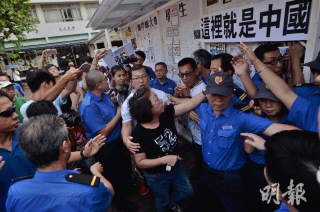 随后一名白衣女子突然大幅度撕走“民主墙”上的标语,正在当值的学生会外务秘书李文耀即上前阻止并询问身份,这名女子未有响应,其后乘坐私人座驾离开。约2分钟后,其座驾驶回现场,司机开窗并大叫“英国走狗”。