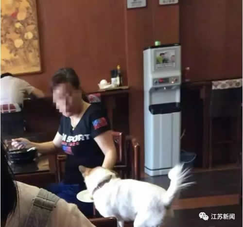小杨说,9月18日中午12点多,她来到惠山区石新路上的一家餐厅吃饭,当时她背后坐着一名五十岁左右,牵着条狗的阿姨,让小杨诧异的是,这名邻桌的阿姨竟把自己的盘子给狗舔了起来。