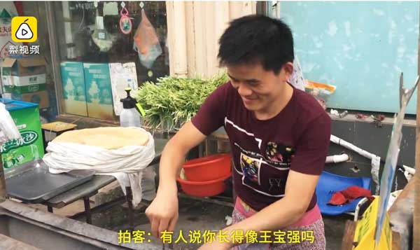 “宝强哥”介绍道,从2005年开始,就一直在某高校卖煎饼,因为长相与王宝强相像,于是把他的“江苏煎饼”直接被同学改成“宝强饼”。“来到我们学校,你说江苏煎饼没人知道,可你只要说宝强饼,没谁不知道的。”该校学生小蒋说。