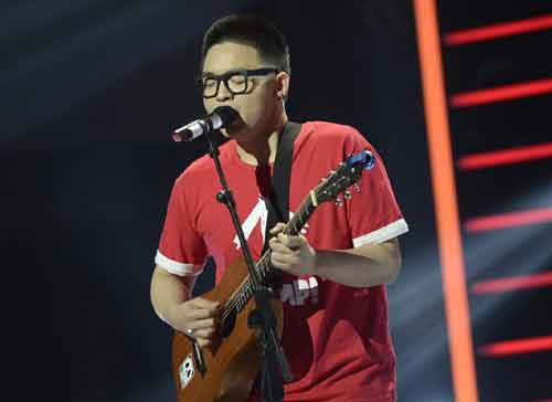红色T恤、黑框眼镜,身上别着一把吉他、脚边放着一排鼓,这复杂的乐器编排就注定了这位学员的不凡。果不其然,当四位导师看到了潘高峰的“华丽”表演时,都瞪大了双眼,“天哪”、“酷”、“精彩”、“漂亮”等感叹之词都不足以表现出潘高峰给众导师的惊喜。