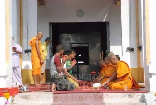 如上图所示,泰国人民去世后,尸体或将交由寺庙众僧举办葬礼法会,不间断念诵佛经结束后,尸体将被送往“烧尸房”火化