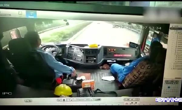 然后,令他震惊的一幕发生了:只见货车的右前方底端突然“窜”出了一辆小轿车,然后,那轿车撞向了护栏……