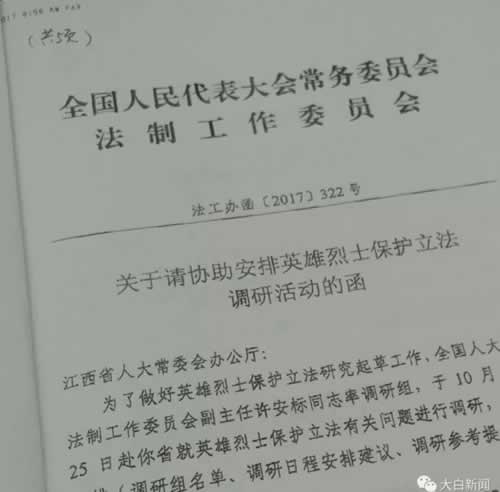 同时,承禀法律付予,在我国民法《总则》修改补充新增第185条生效实行之际,向方志敏烈士原籍地江西弋阳县人民法院依法对涉及网络传播侵害英烈士声誉帖文责任人,提起民事诉讼,追究其所应负责任。作为英烈后代,我依法为英烈维权的做法和就做好英雄烈士保护立法的相关建议意见,受到了与会同志们的重视与好评。