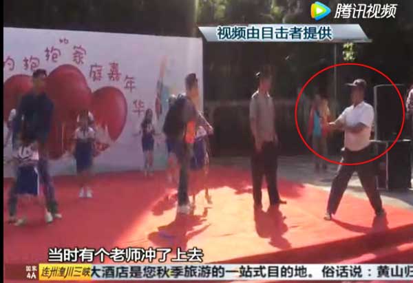目击家长: “不知道怎么回事,他就拿着菜刀,好像要砍人的样子,我当时在台下拍视频,也没反应过来,因为他从侧面持刀冲上来。”