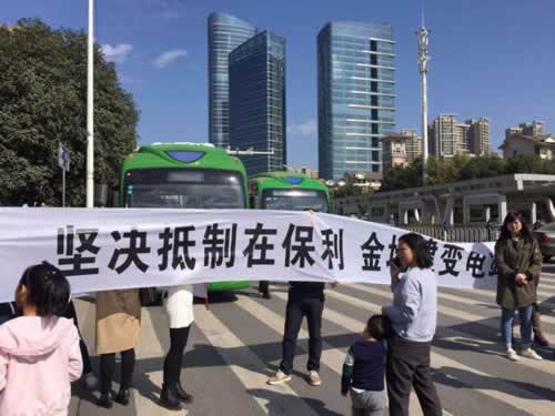 2017年11月5日上午,东湖新技术开发区关山大道上,三百余位业主拉起三条白布黑字条幅。对新规划的“大鹏村110千伏变电站项目规划选址公示”提出抗议,表示不赞同这一个规划。