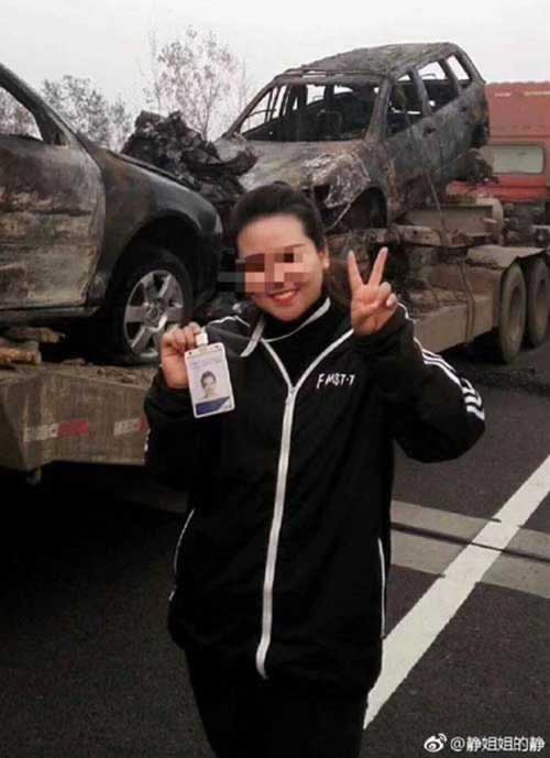 事故惨烈,然而颍上县广播电视台一女工作人员在受损车辆前,竟然微笑摆拍引发网友热议。