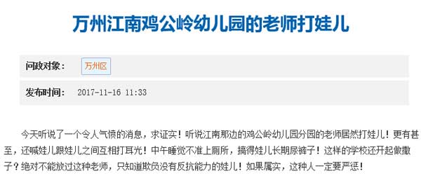 记者致电重庆万州官方获悉,此事属实,当地教委目前已介入,具体情况还在进一步调查中。