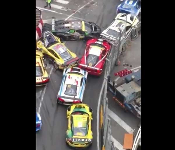 实拍澳门13辆千万超跑连环追尾 堪称史上最贵交通事故!