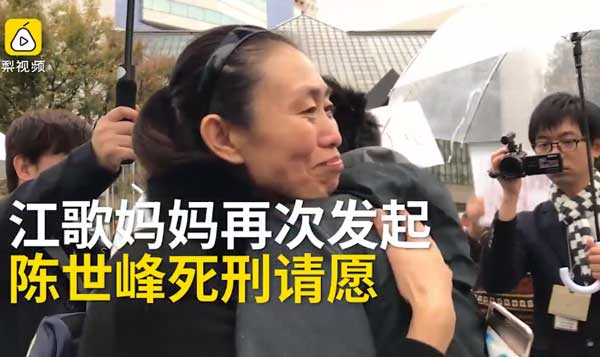 实拍江歌妈妈在日判陈世峰死刑请愿视频