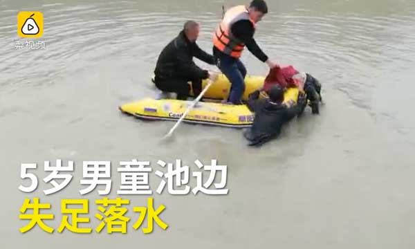 安徽阜阳,一5岁男童在深约2米水池边失足落水,救援人员打捞上后,其父亲直接从岸边跳下水池,扑上紧抱痛哭,随后抢救做人工呼吸,但已无生命迹象。
